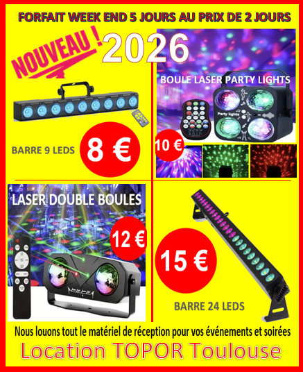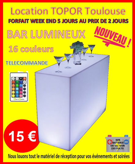 Location TOPOR vous propose de nombreux équipements à petits prix pour l’organisation de votre évènement festif ! Notre site : Location TOPOR